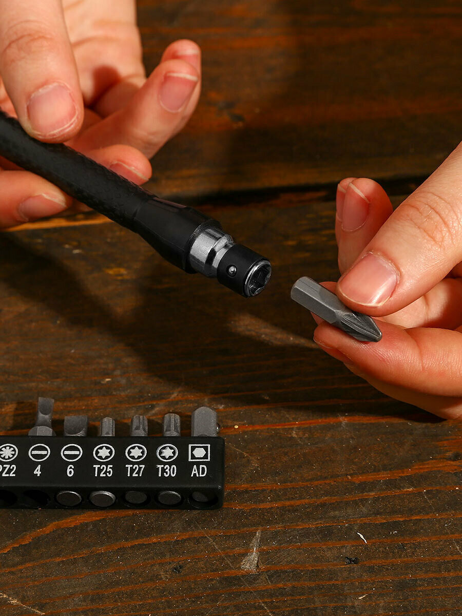Удобный , недорогой комплект для ручного откручивания и закручивания в местах, где нет возможности подлезть прямой отверткой.