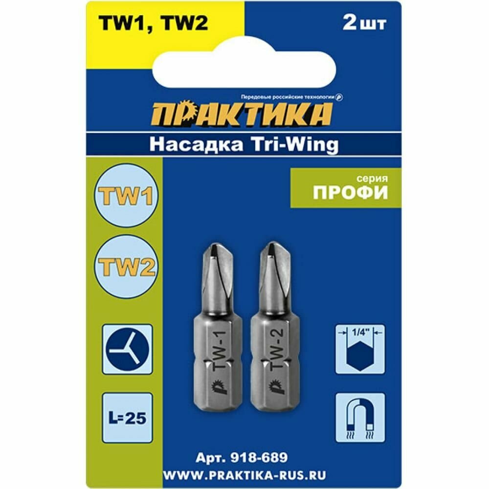 Бита отверточная ПРАКТИКА "Профи" Tri Wing 1x25мм, 2x25мм (2шт), блистер (918-689)