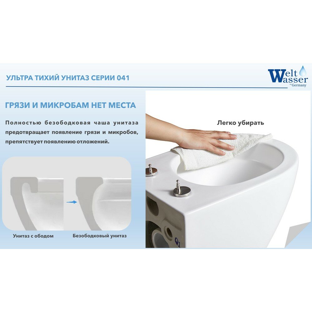 Унитаз подвесной WeltWasser Salzbach 041 GL-WT безободковый торнадо интересное: