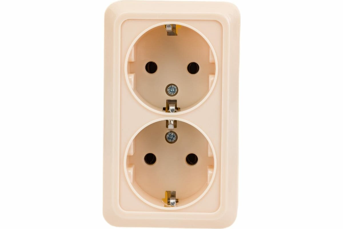 Розетка двойная открытой установки с заземлением сосна, 2П, IP20, 16А, Ладога