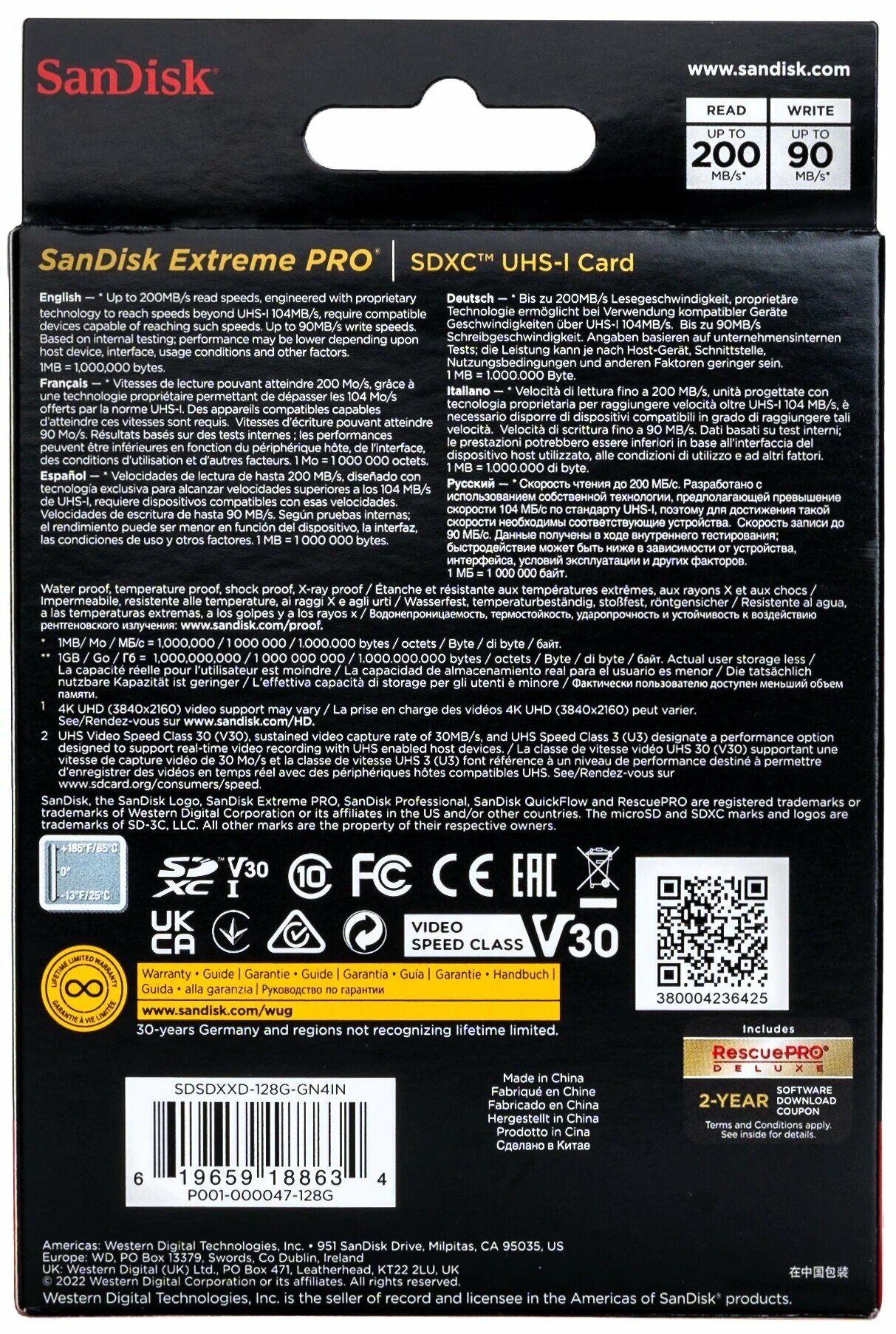 Карта памяти SanDisk SDXC 128GB Extreme Pro UHS-I V30 U3 R200/W90MB/s интересное: