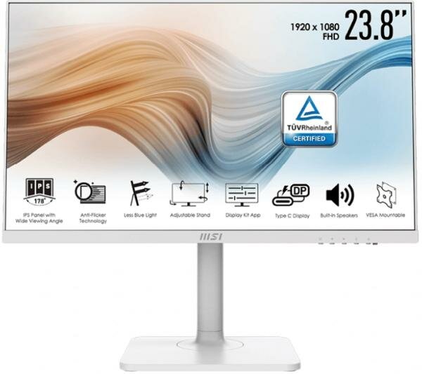 Монитор 23,8" MSI Modern MD241PW 9S6-3PA5FH-058 16:9 FHD, IPS Flat, 5ms(GTG), 75Hz, 1000:1, 100K:1, 250nit, 178/178, HDMI, USB-C, Tilt, Swivel, Height