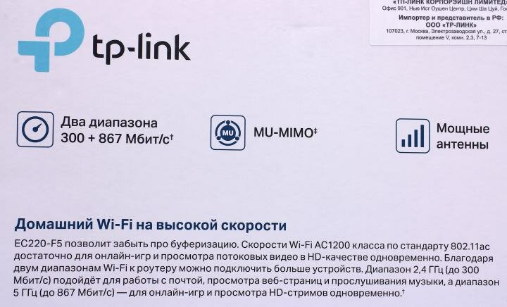 Wi-Fi роутер Wi-Fi роутер TP-Link EC220-F5 AC1200 интересное: