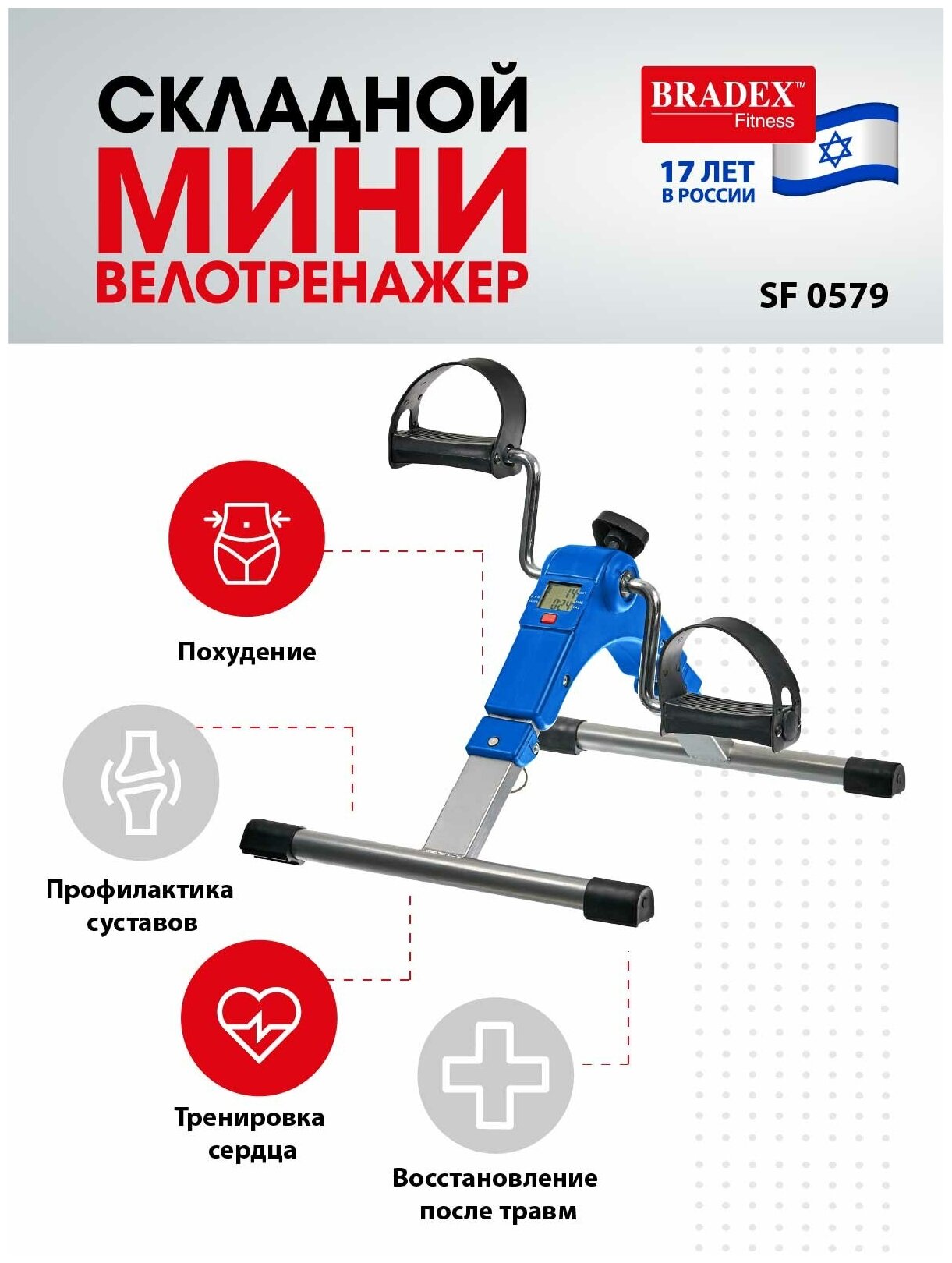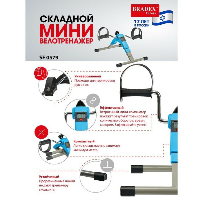 Мини велотренажер Bradex складной синий SF 0579-n s-dostavka интересное:
