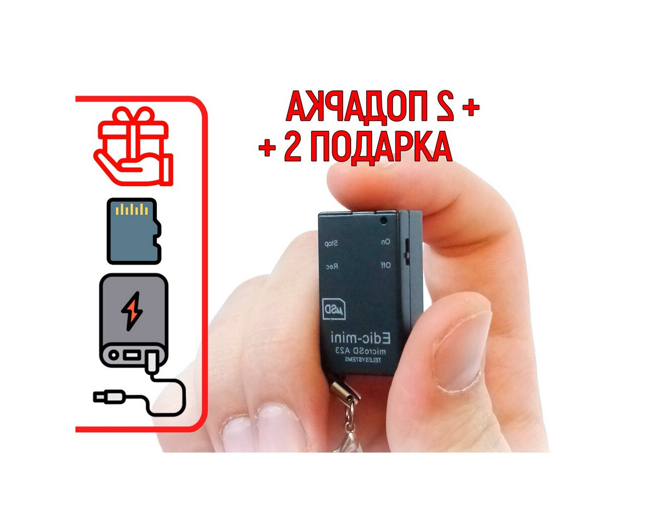 Диктофон для записи голоса Эдик-мини A23 microSD (WAV) (S27552IC) + 2 подарка (Power-bank 10000 mAh + SD карта) интересное: