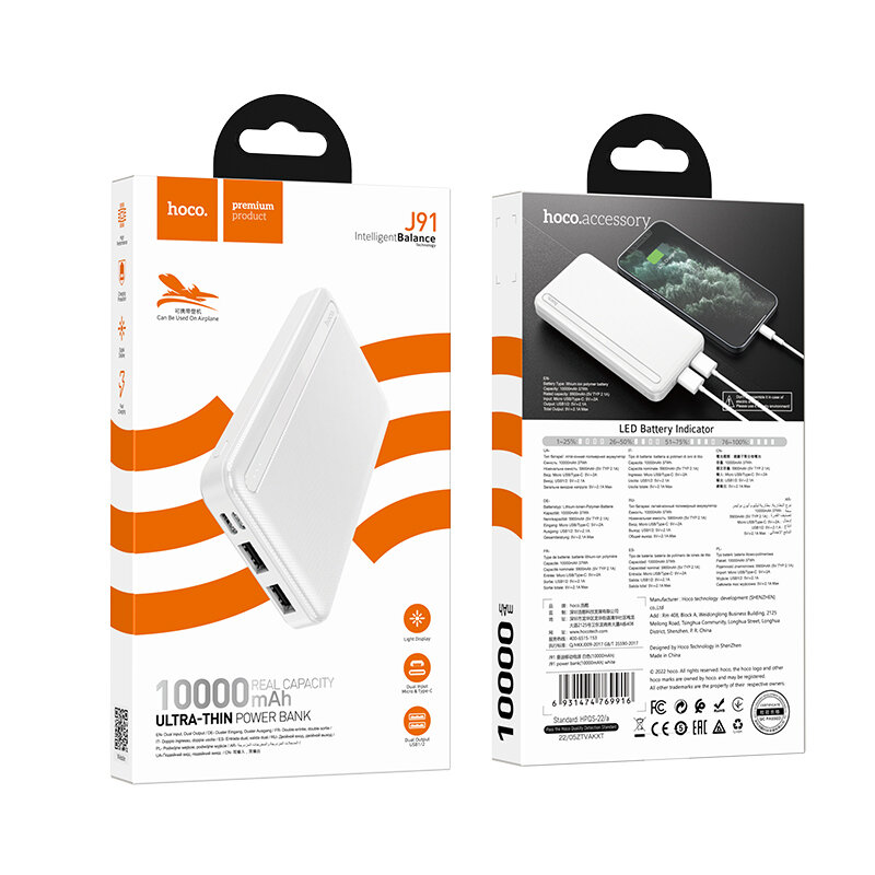 Hoco J91 10000 mAh white (Белый)