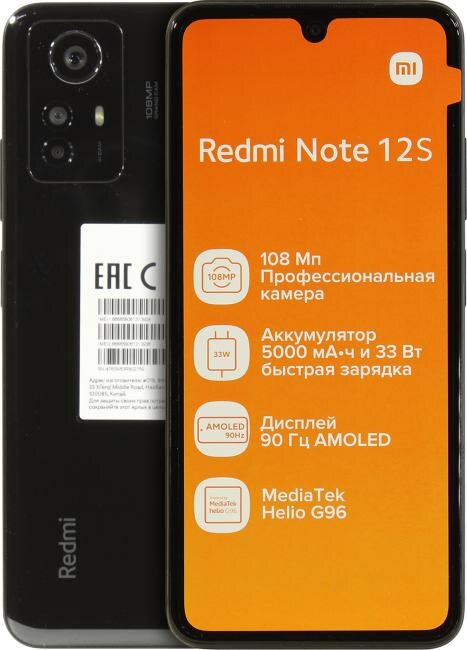 Смартфон XIAOMI Redmi Note 12S 8/256GB черный оникс (EAC)