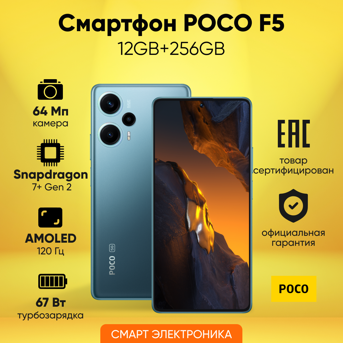 Смартфон POCO F5 12GB+256GB Blue Ростест интересное: