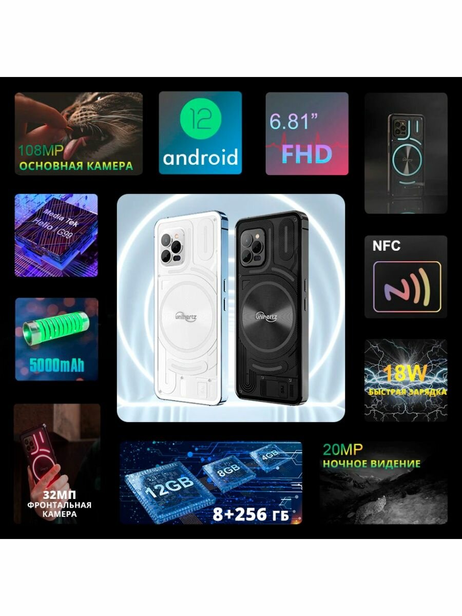 Unihertz Luna, 4G Android 12 Смартфон, LED подсветка, камера 108 МП + 32 МП, NFC, GPS