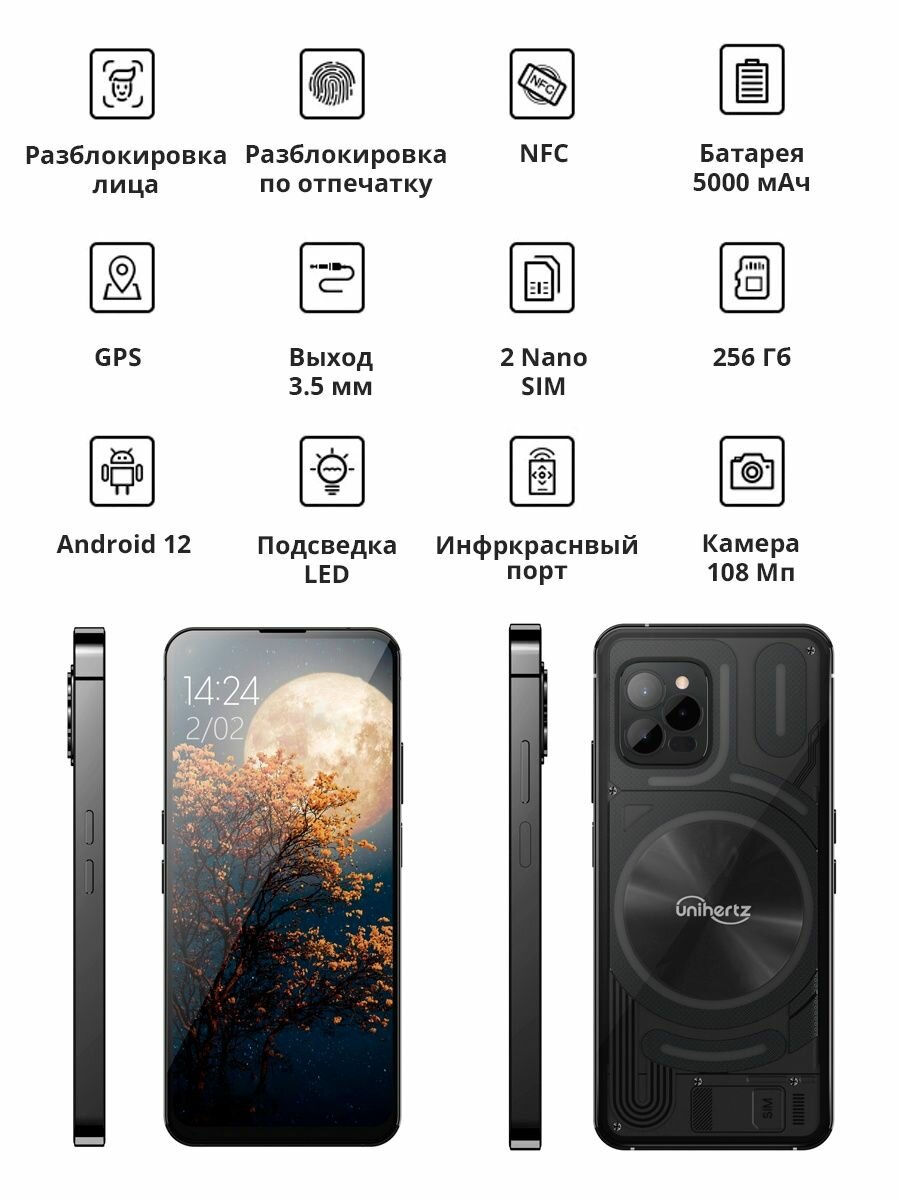 Смартфон unihertz Luna, 8/256ГБ, global, Официальный стандарт, 8 ГБ, 256 ГБ, unihertz, Luna, Глобальная версия, Смартфон, Черный, 8ГБ, 256ГБ, global, новый, 01.04.2023