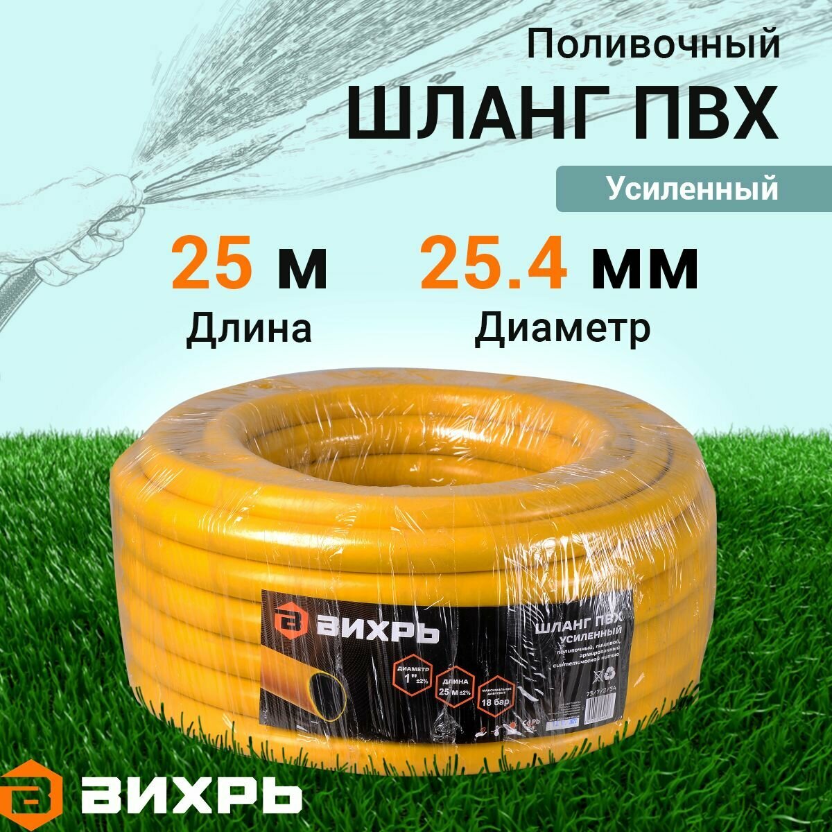 Купить Шланг поливочный ПВХ усиленный, пищевой трехслойный армированный 1", 25м (жёлтый) Вихрь
