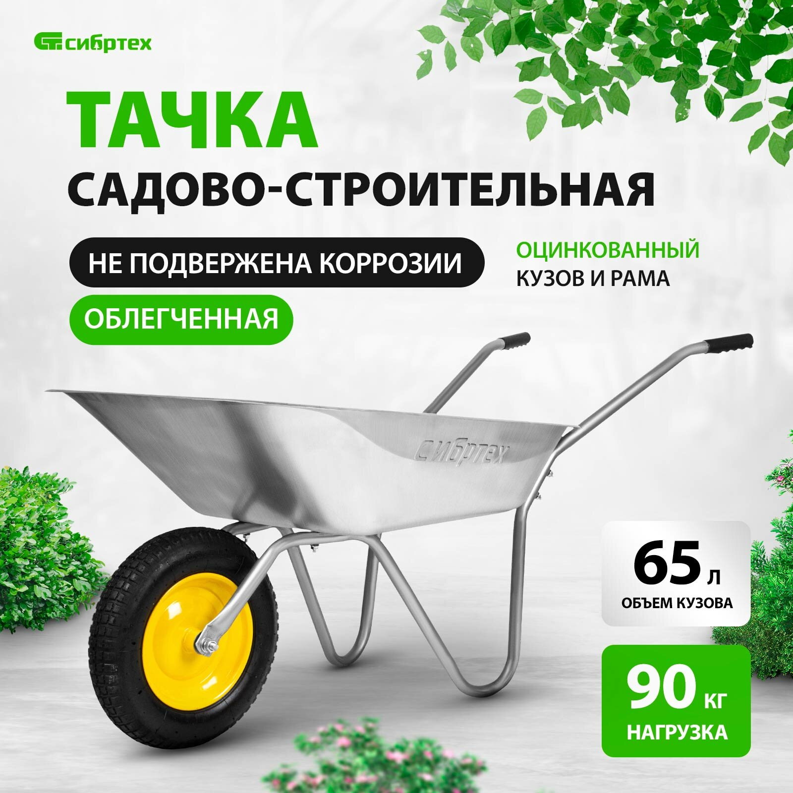 Садовая тачка СИБРТЕХ грузоподъемность 90 кг, оцинкованная рама, 65 л 689614