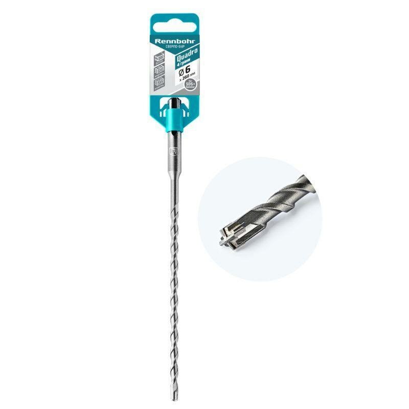 Сверло-бур для перфоратора, Rennbohr, Quadro, диаметр 6х260 мм, SDS-Plus, 510626