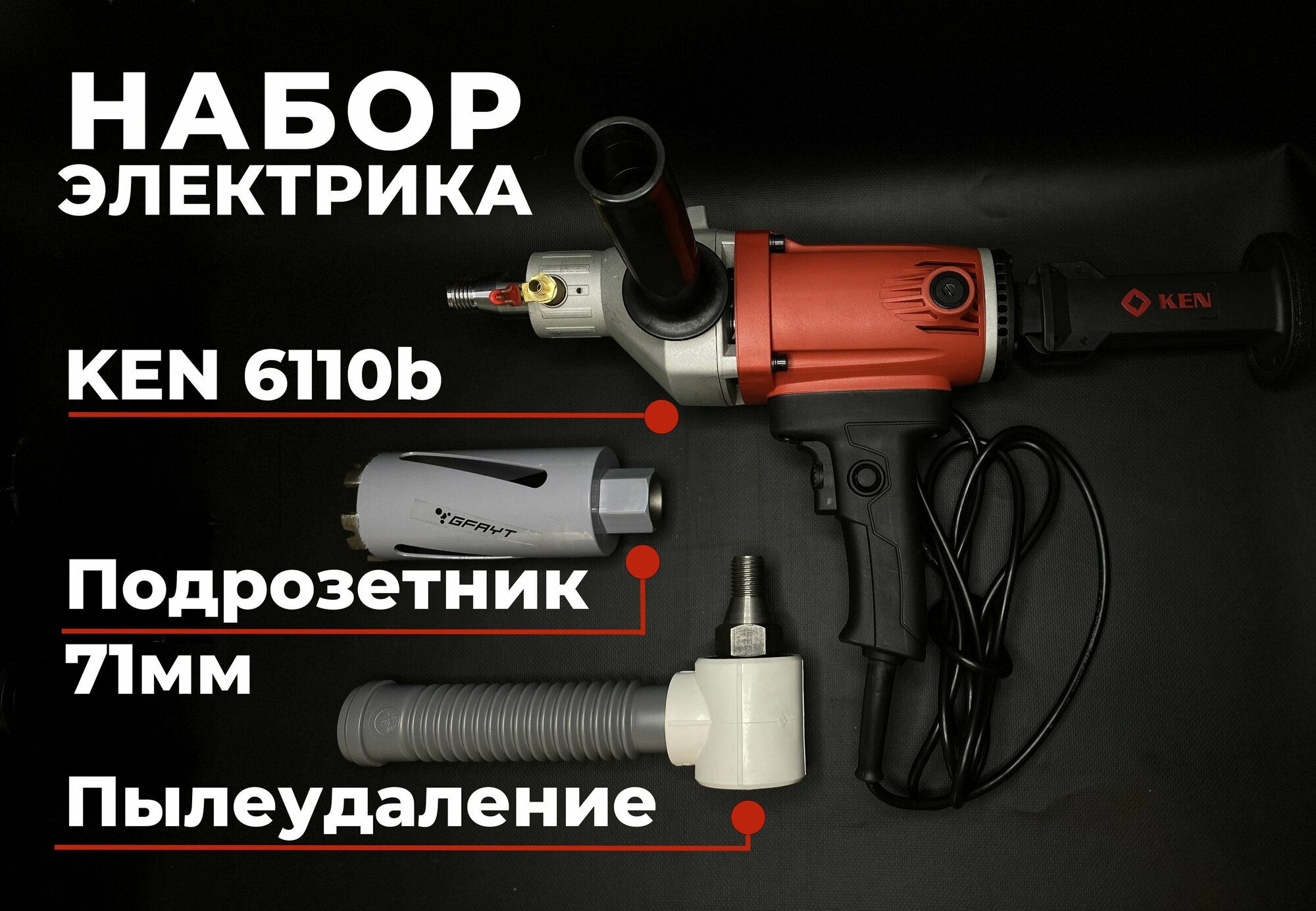 Дрель алмазного бурения KEN 6110B + коронка алмазная 71 для подрозетников интересное:
