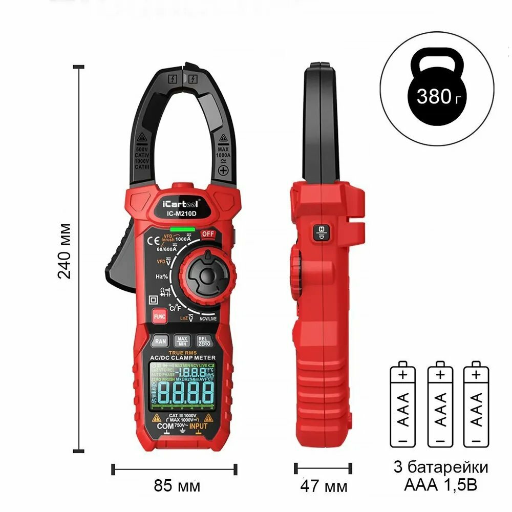 Токовые клещи iCartool IC-M210D