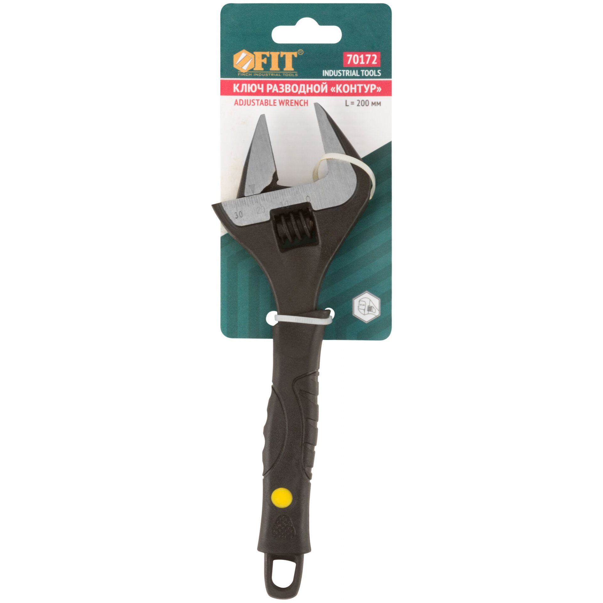 Ключ разводной "Контур", узкие губки, шкала, экстра увелич.захват, ПВХ накладка на ручку 200 мм ( 39 мм ) FIT 70172