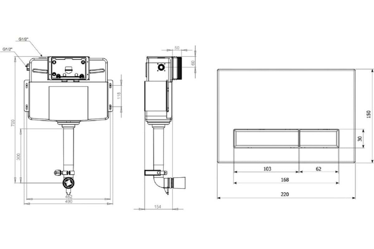 Инсталляция для приставного унитаза Lavinia Boho RelFix 77030081 в комплекте 3 в 1: бачок скрытого монтажа с креплением, кнопка смыва, диспенсер