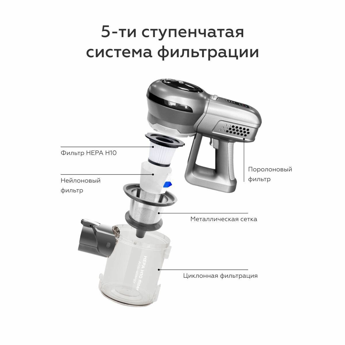 Купить Беспроводной пылесос BQ VCA0101H Серый
