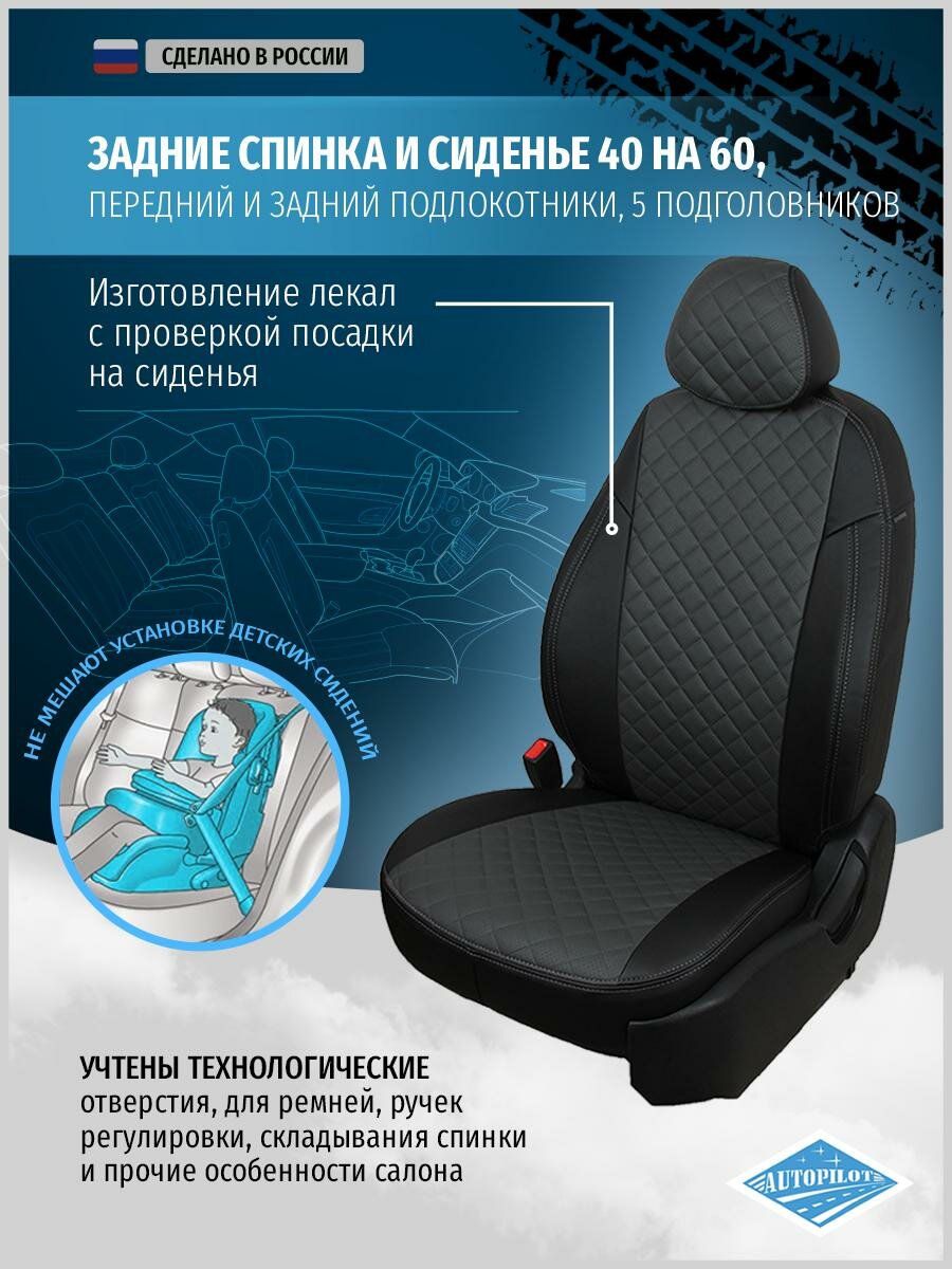 Чехлы на автомобильные сидения Автопилот для Mitsubishi Outlander III с 12г. (Экокожа ромб, Черный + Темно-серый)