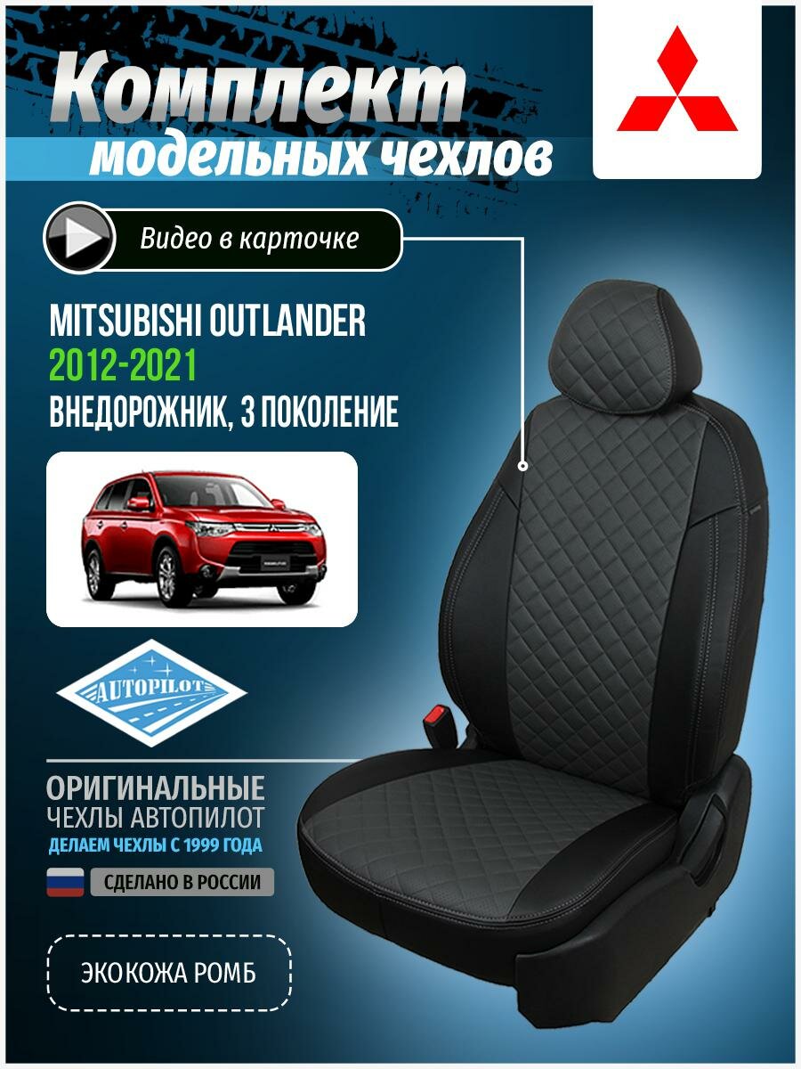 Чехлы для Mitsubishi Outlander 3 2012-2020 Автопилот Темно-Серый Экокожа с ромбом mi-ou-o3-chets-r
