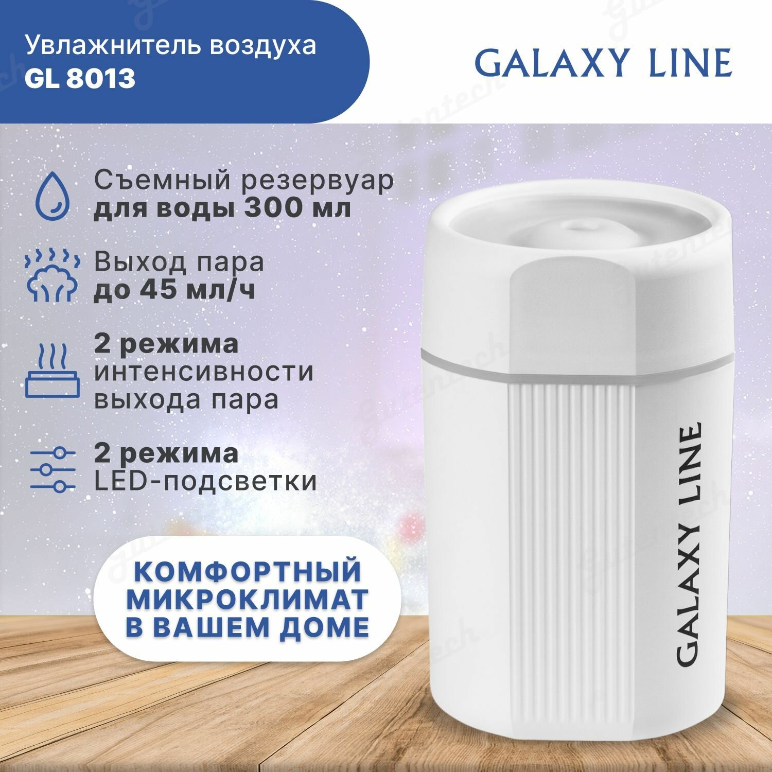 Увлажнитель воздуха Galaxy GL 8013, ультразвуковой, 35 Вт, 0,3 л, до 30 м2, бело-золотистый интересное: