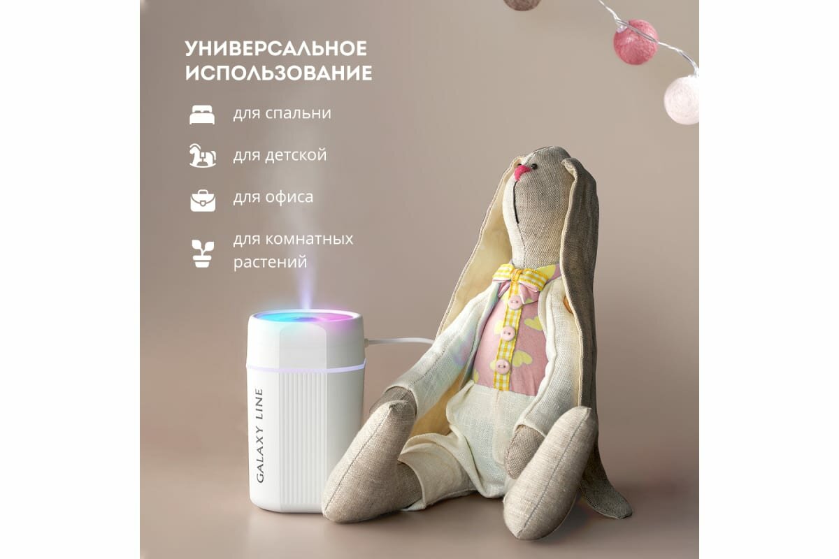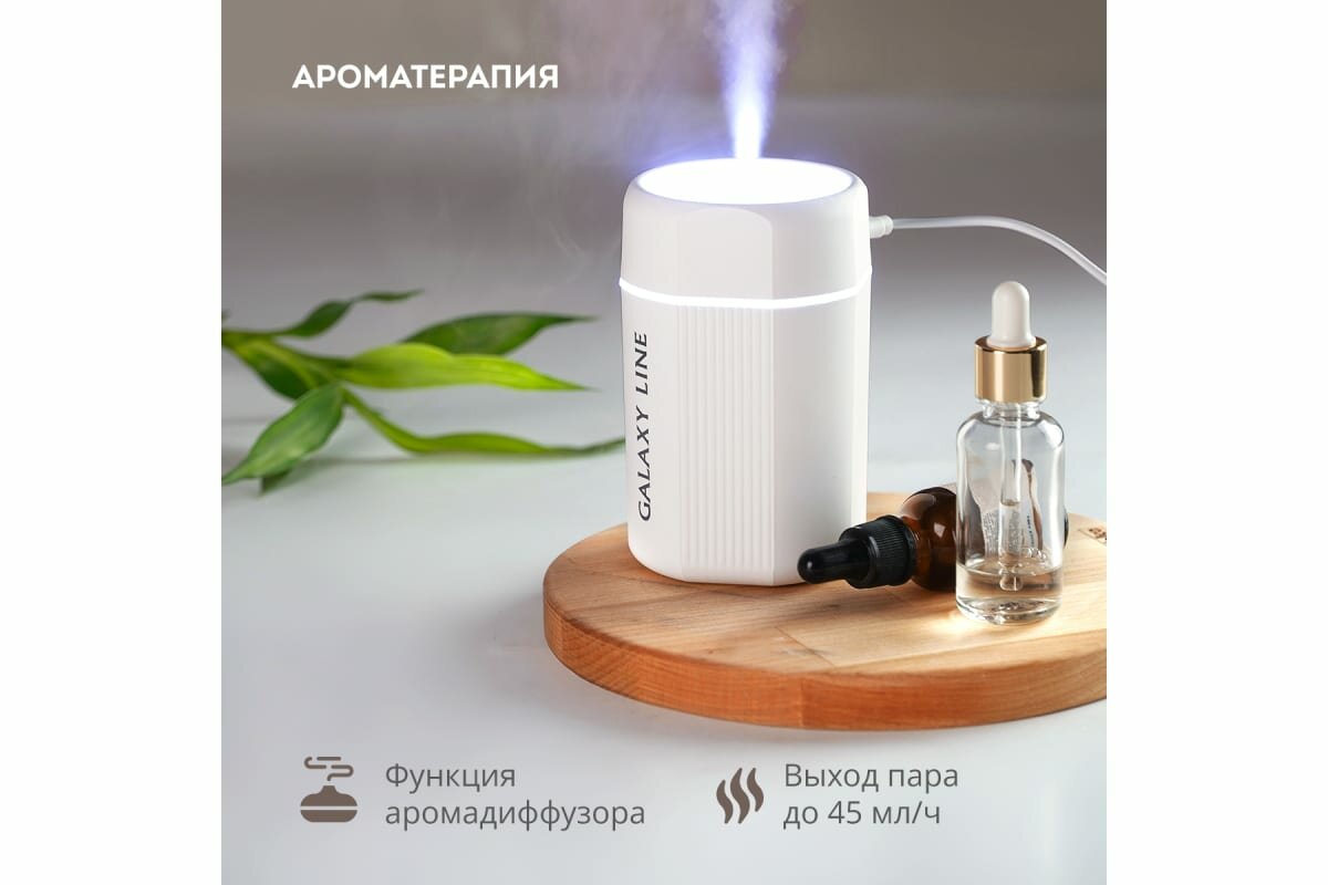 Маленький. Уютный. Парит хорошо. Нравится белый свет. Можно заливать аромомасло.