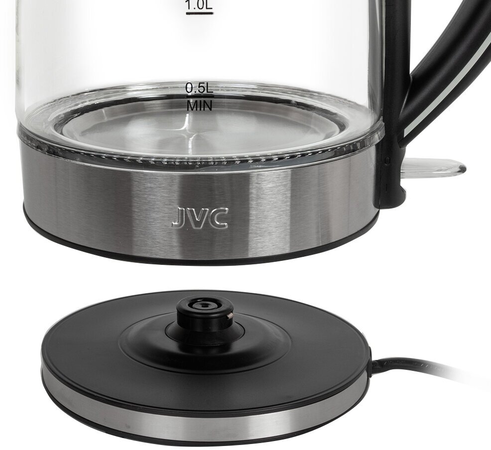 Чайник электрический JVC 1,7 л стеклянный с контроллером STRIX, автооткрывание крышки, светодиодная подсветка, индикация включения, 2200 Вт