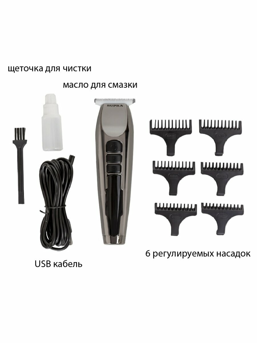 Машинка для стрижки SUPRA HCS-145 6 насадок, серебристый с черным