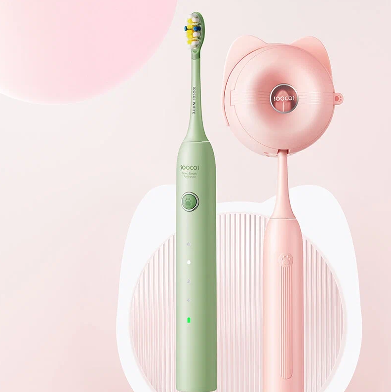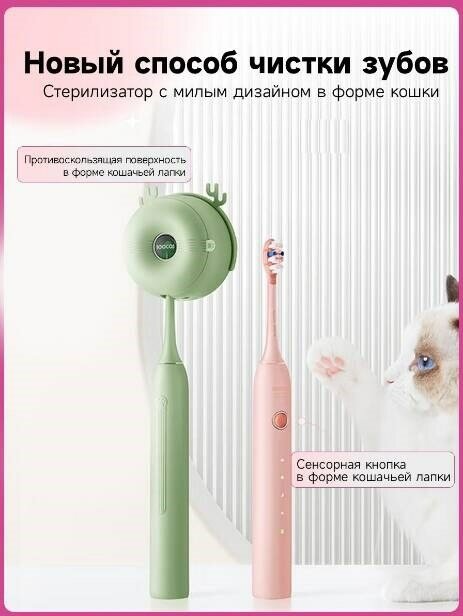 Электрическая зубная щетка Soocas D3, со стерилизатором, две насадки, 4 режима чистки, Зеленый, Ростест (EAC)