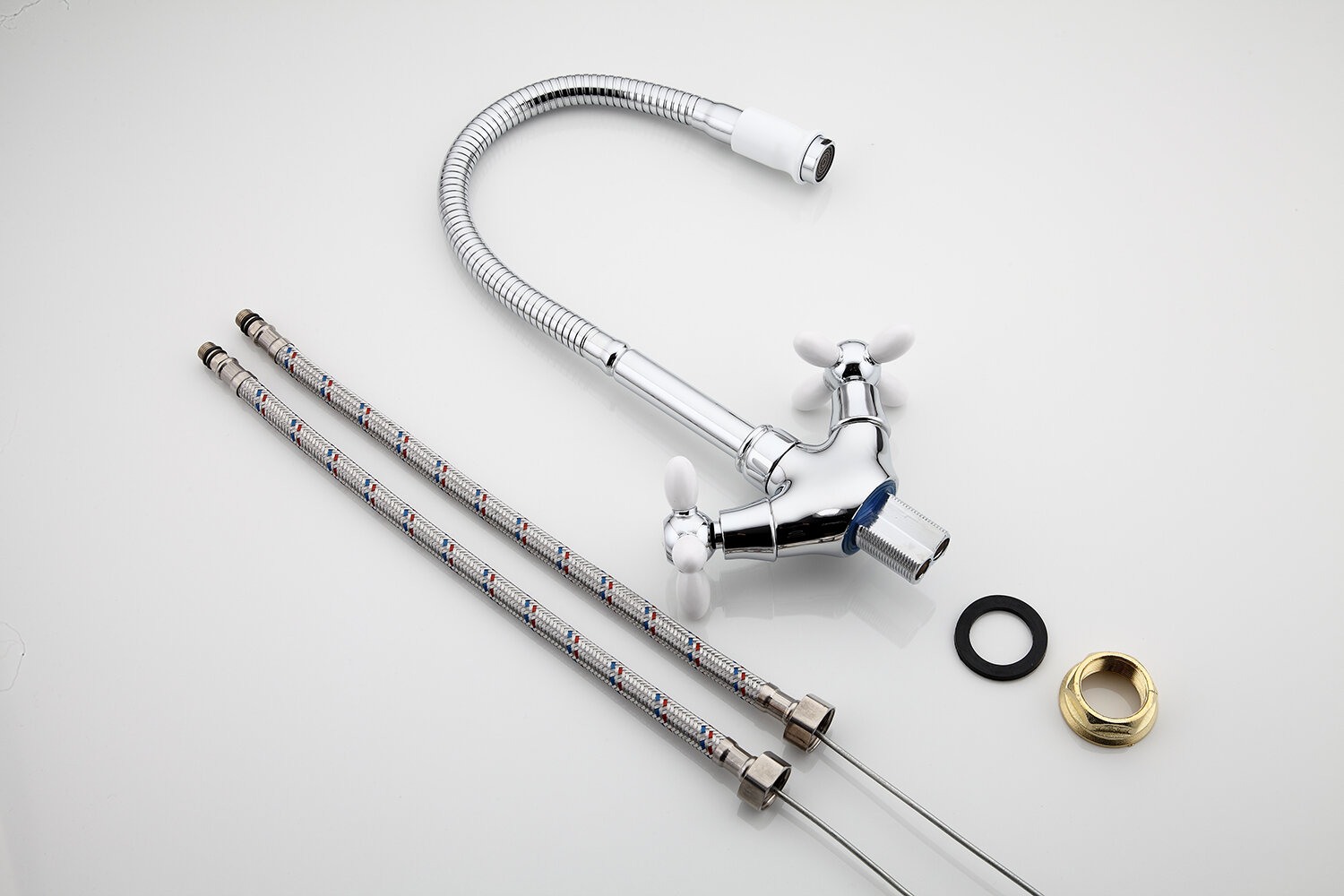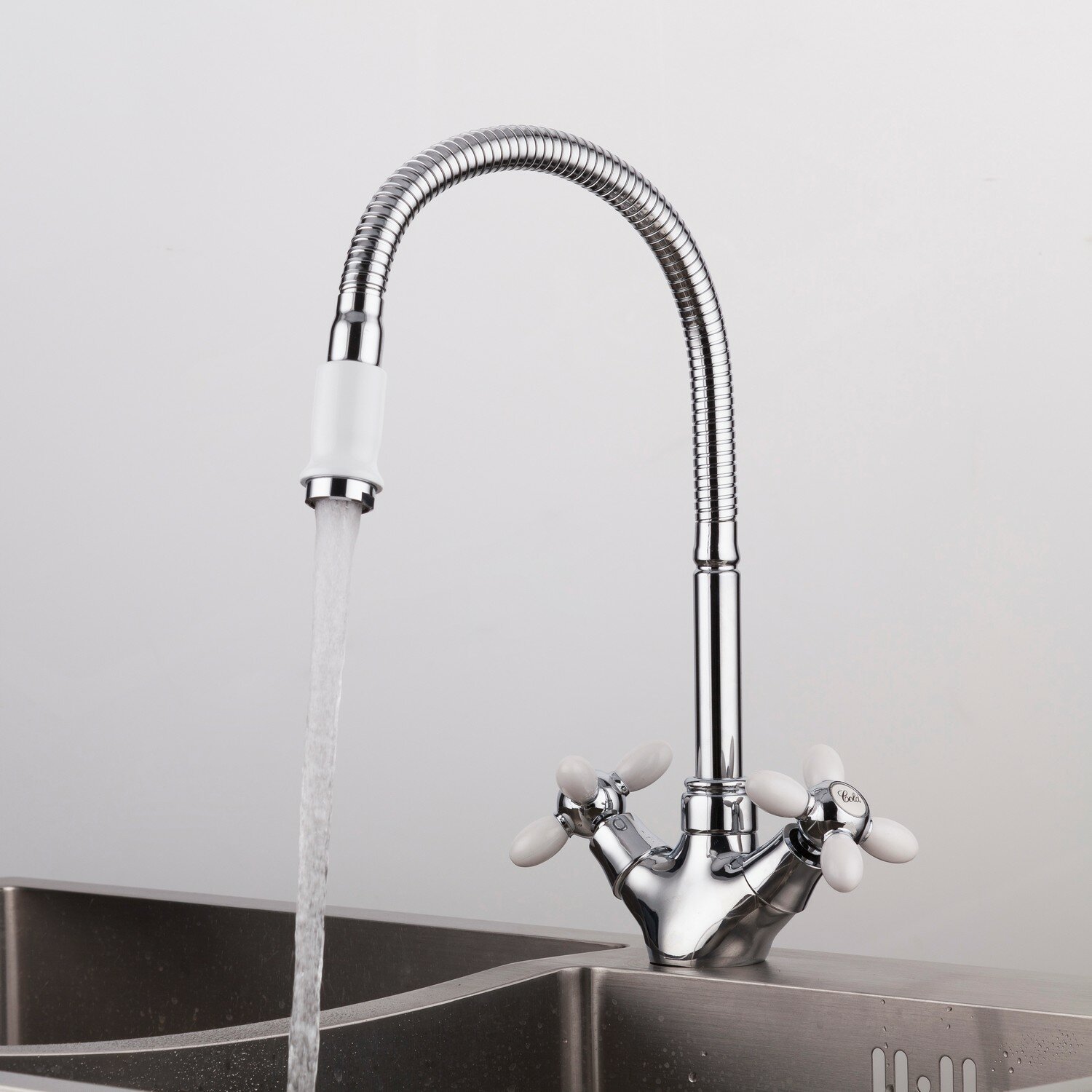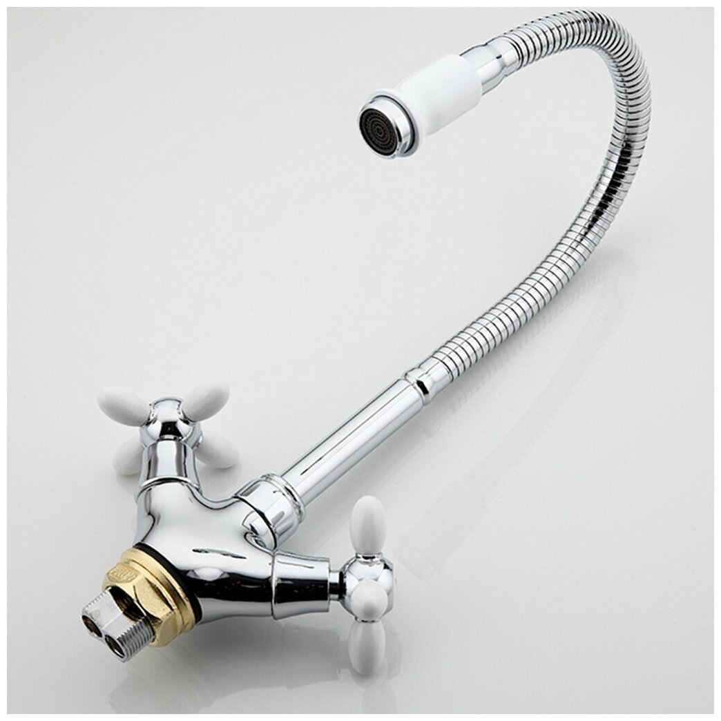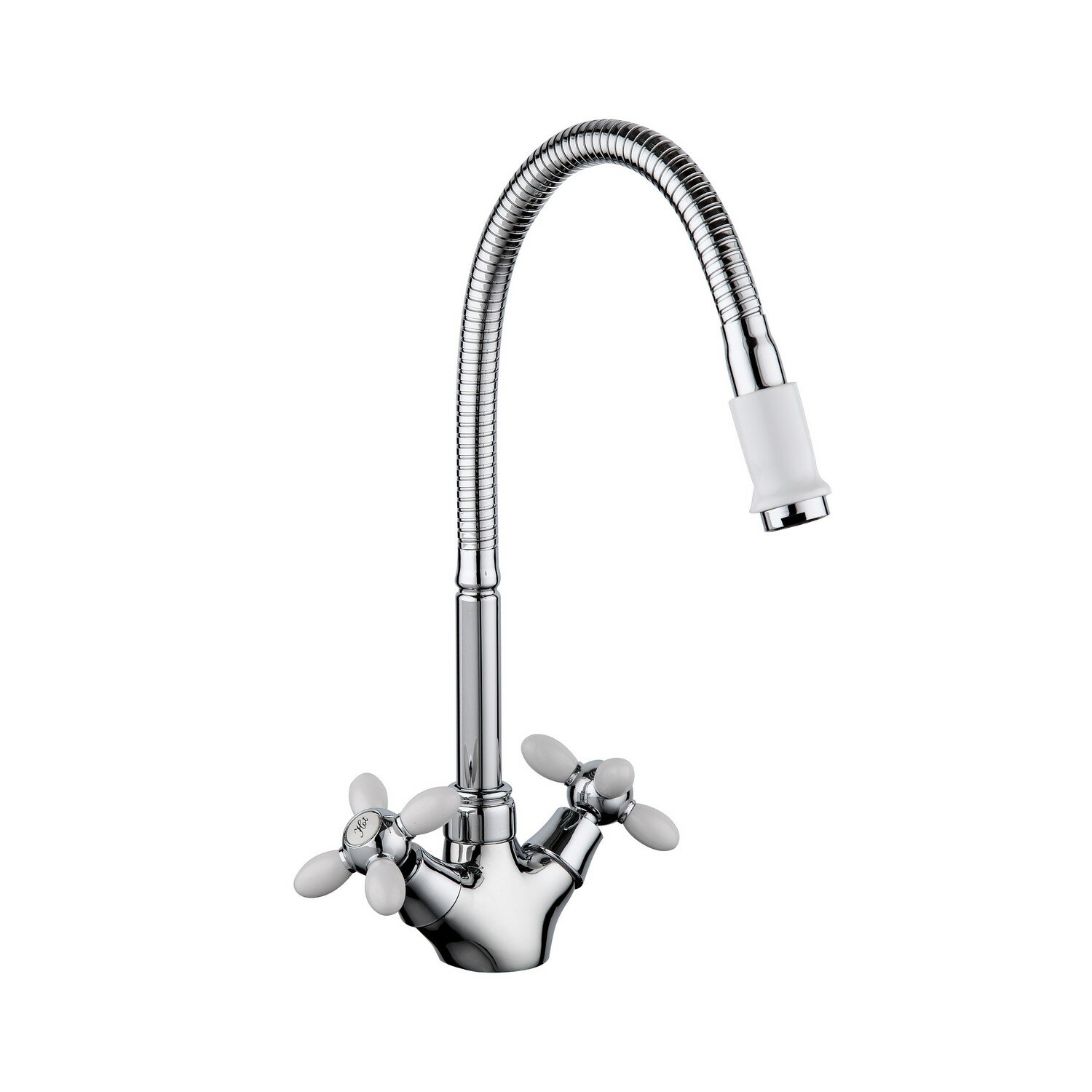 Смеситель для кухни Frud R43127-7, с гибким изливом, двухвентильный, белый/хром