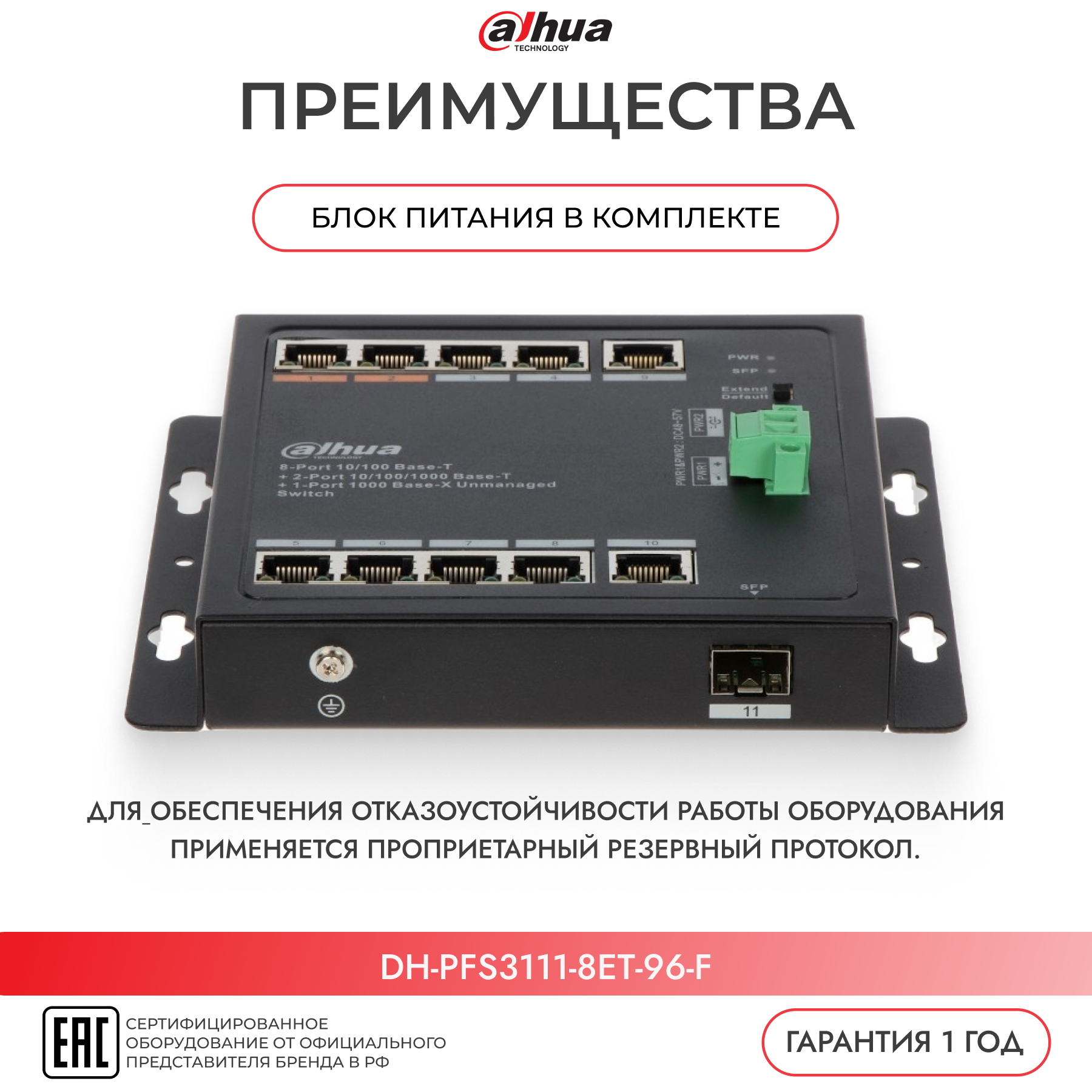 СохранитьКоммутатор Dahua DH-PFS3111-8ET-96-F интересное: