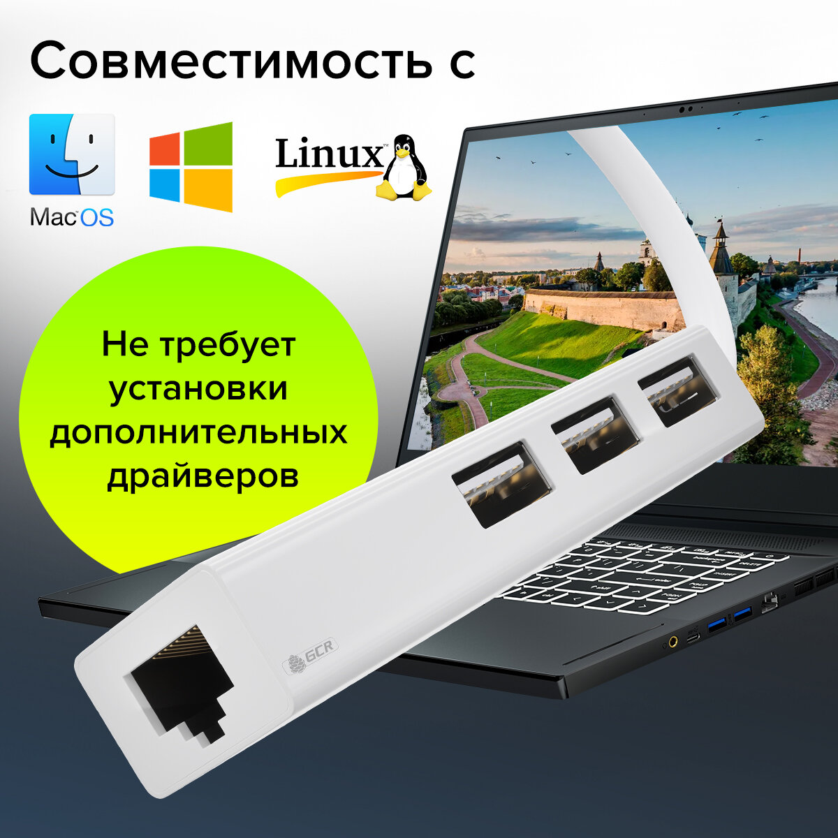 USB 2 Разветвитель на 3 порта + 10 100 мbps Ethernet Network GCR AP03 интересное: