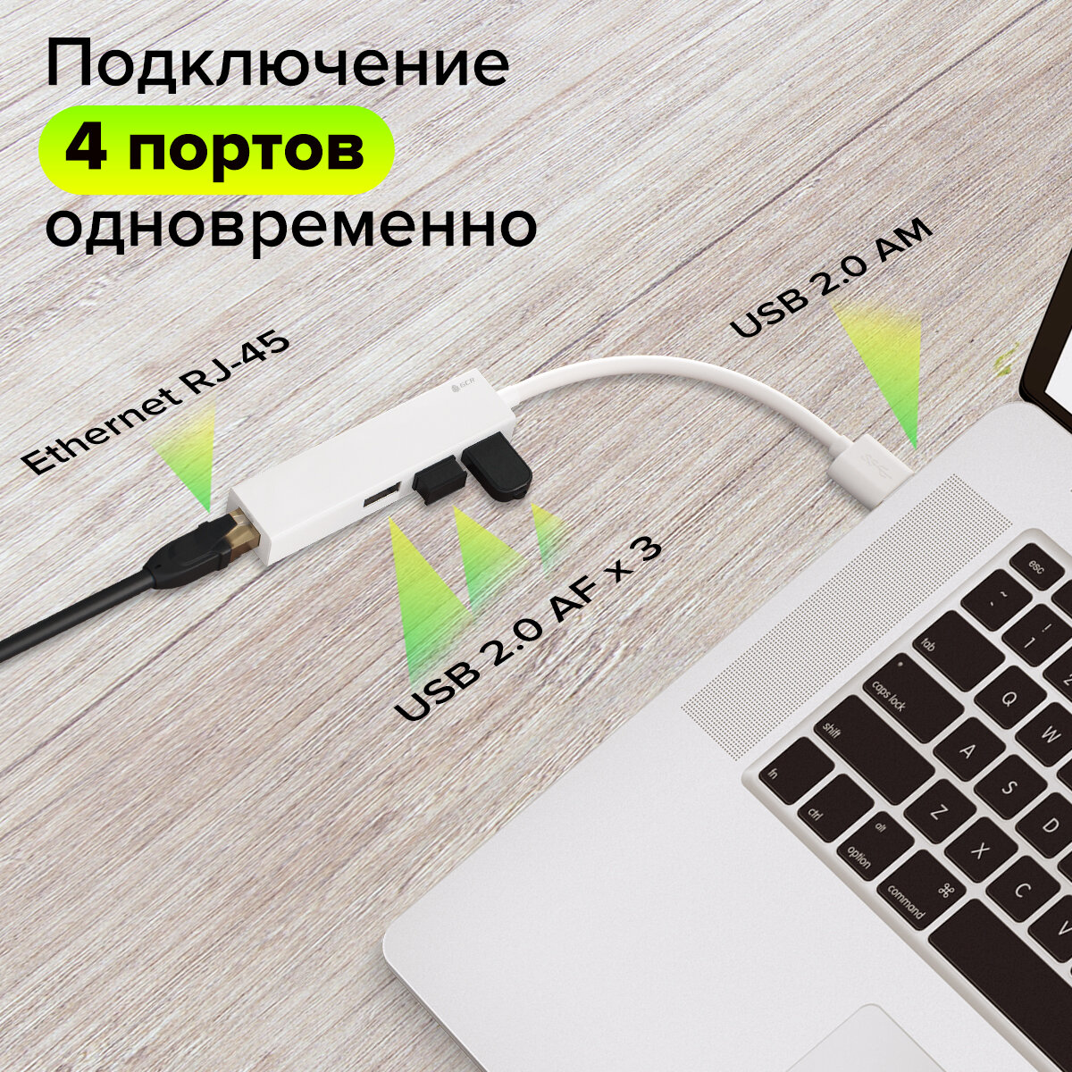 Купить USB 2 Разветвитель на 3 порта + 10 100 мbps Ethernet Network GCR AP03