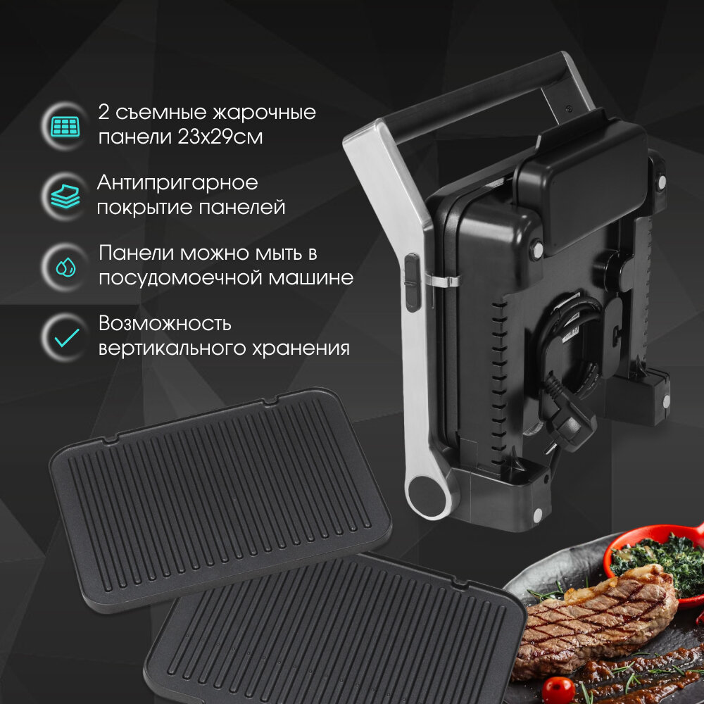 Электрогриль Zigmund & Shtain ZEG-930, серебристый, сенсорное управление