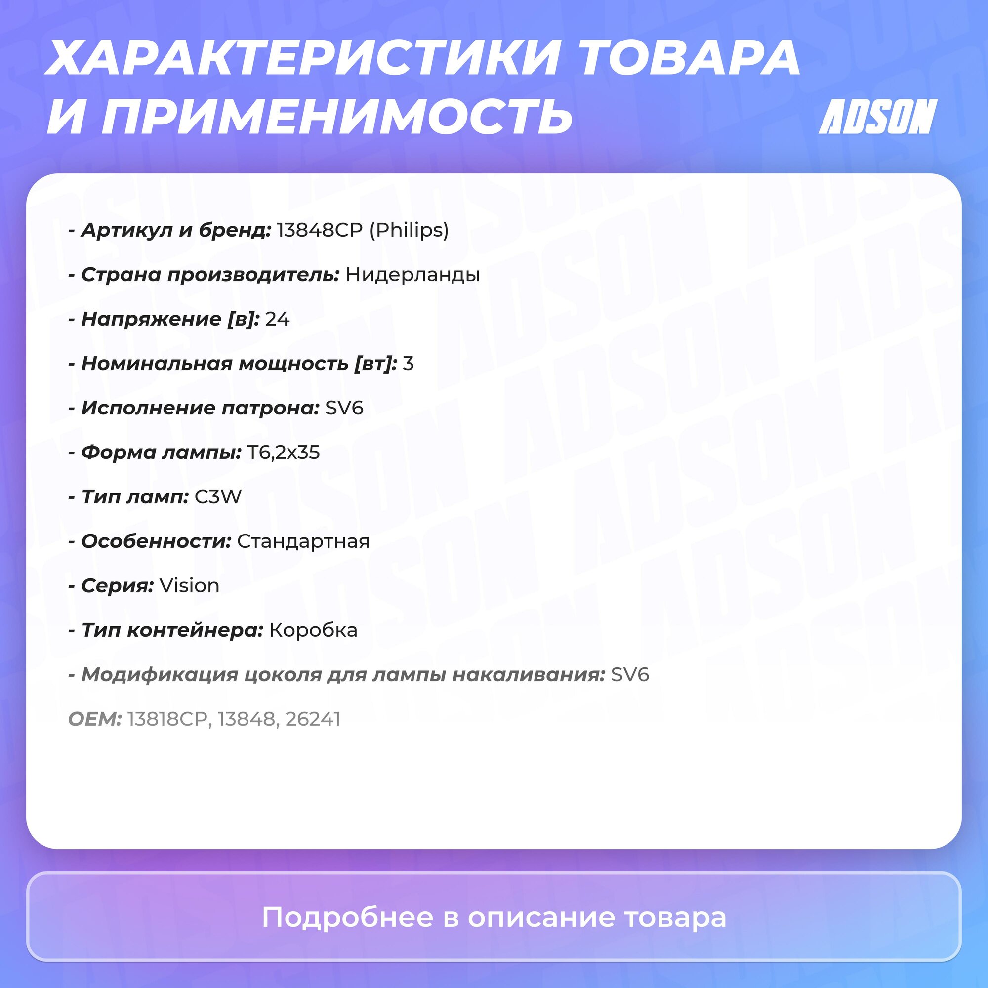PHILIPS 13848CP Лампа PHILIPS галогеновая T6.2x35 SV6 3W интересное: