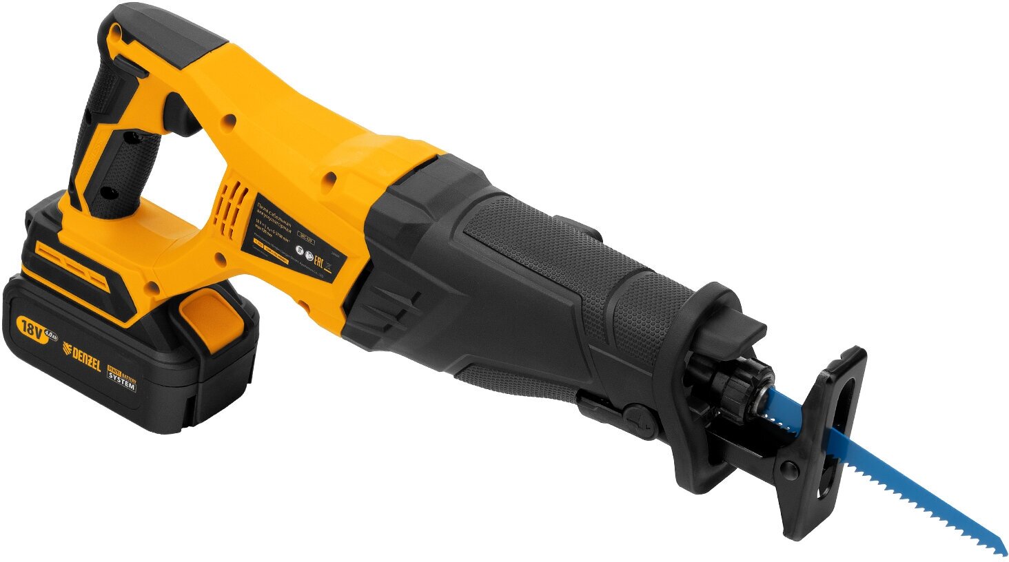 Пила сабельная аккумуляторная Denzel BRC-120, 18В, 4Ач, бесщеточ. двигатель 28460