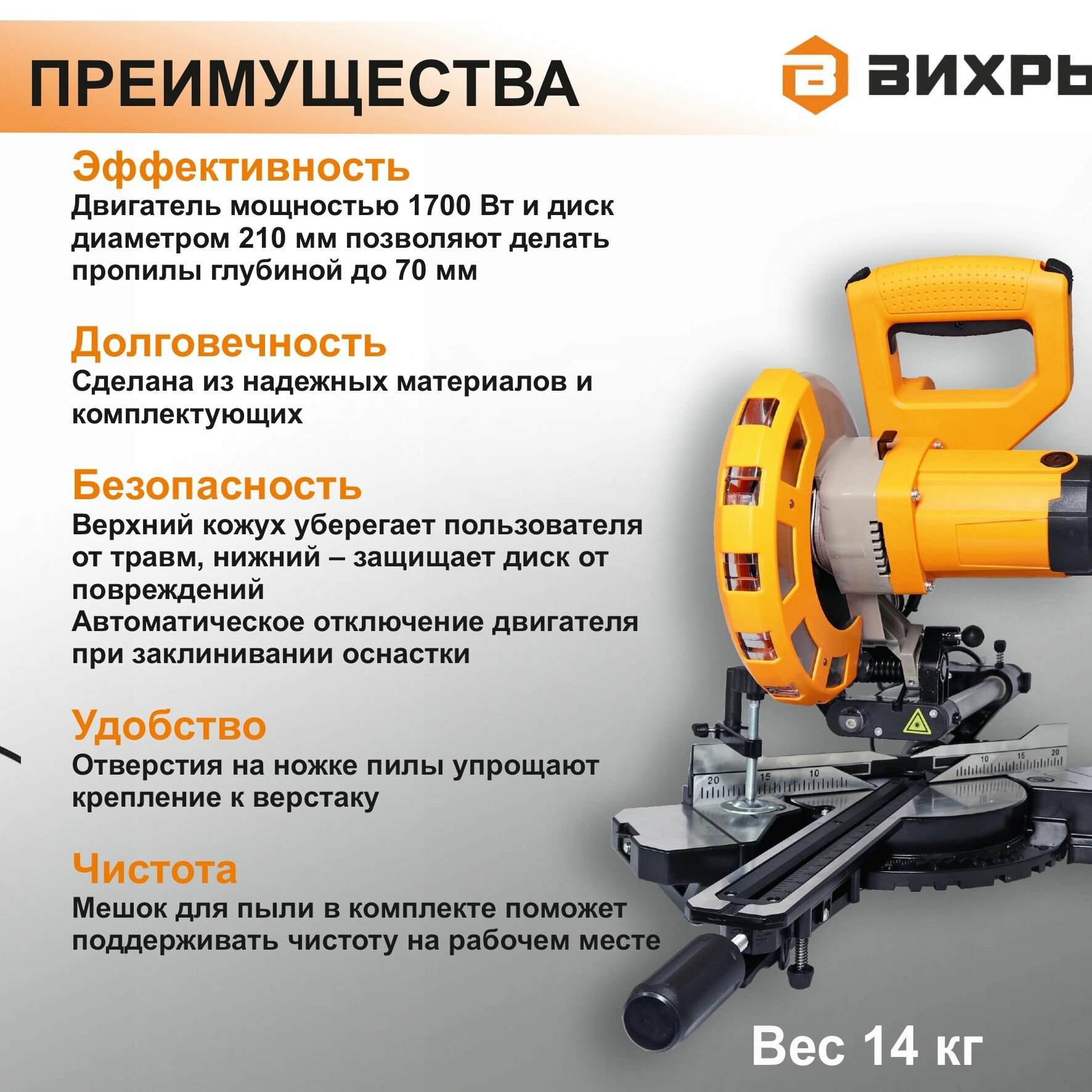 Торцовочная пила ПТ-210ПЛ Вихрь