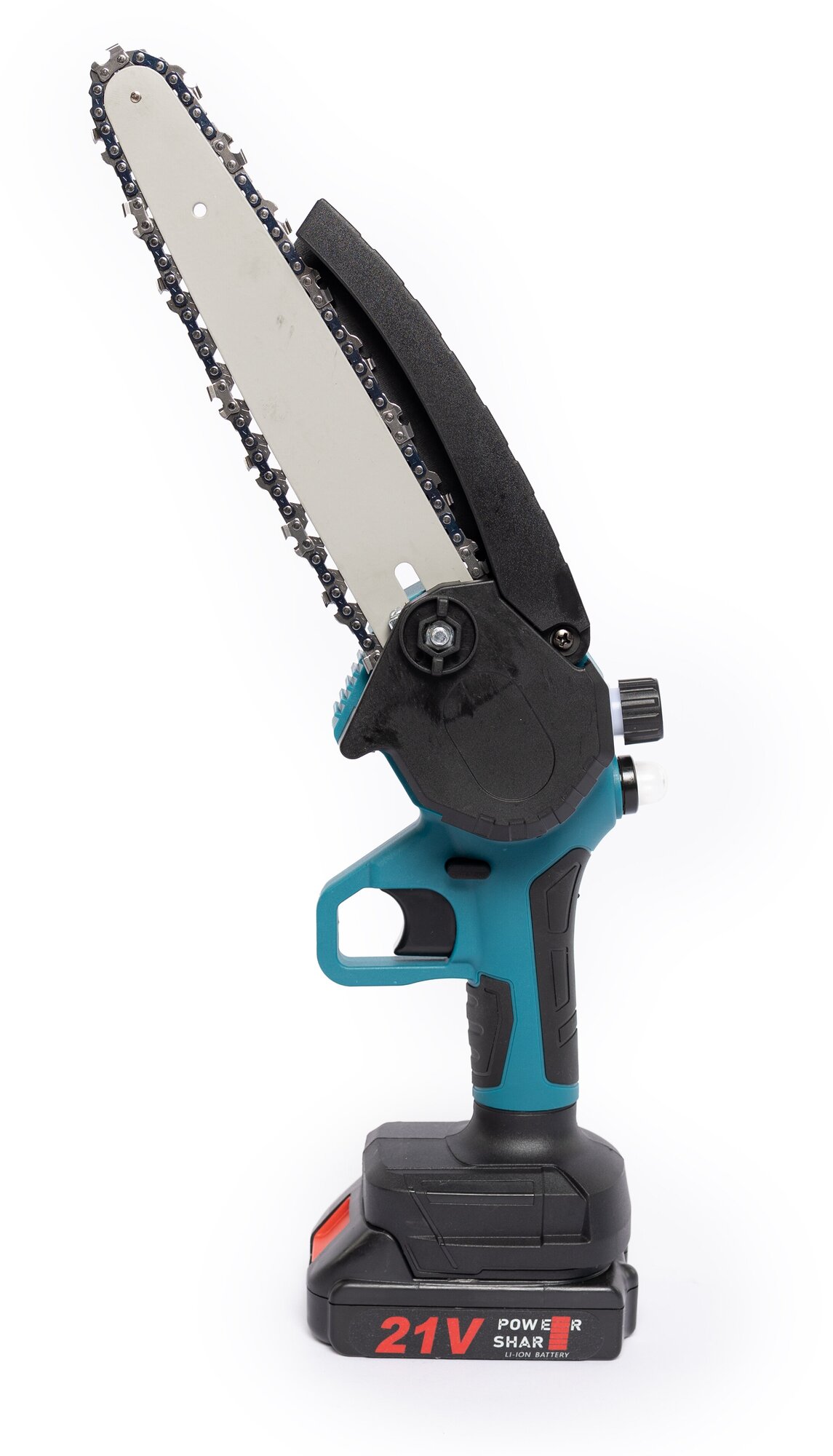 | Плюсы: | удобный, компактный, три цепи, два аккумулятора, встроенная масленка. |