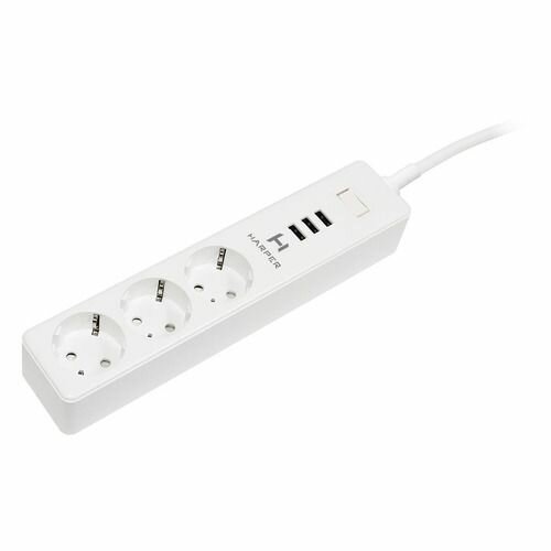 Сетевой фильтр HARPER UCH-315 White 3xUSB/3р/1.5м/3680W/16A/220-240V/50Hz