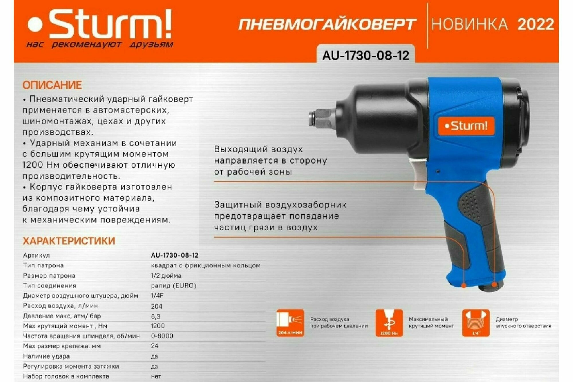 Пневматический инструмент Sturm AU-1730-08-12 интересное: