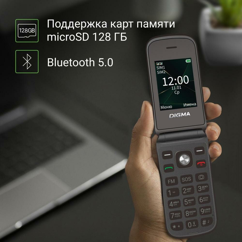 Мобильный телефон Digma VOX FS241 128Mb черный раскладной .