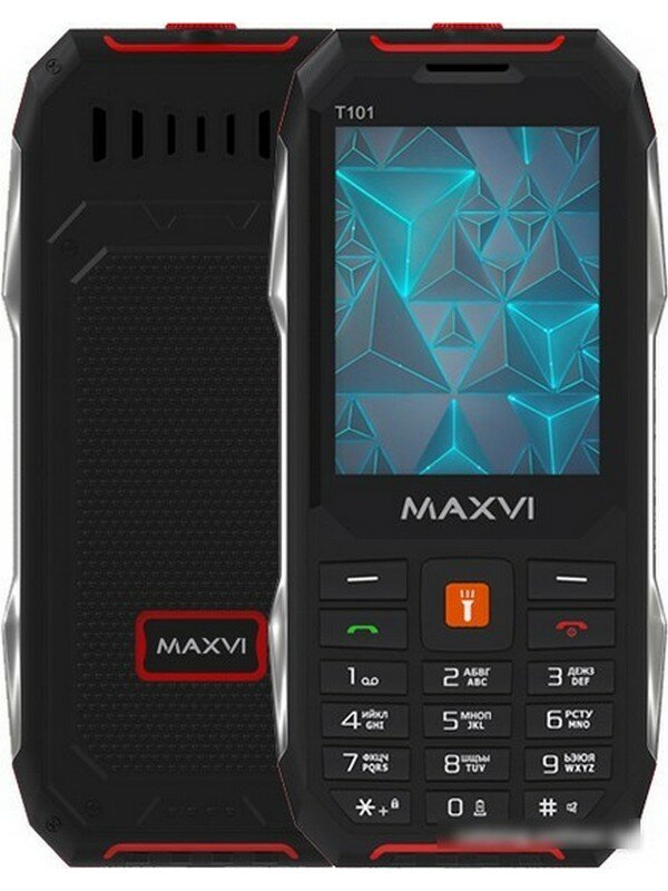 Телефон MAXVI T101, 2 micro SIM, черный/красный