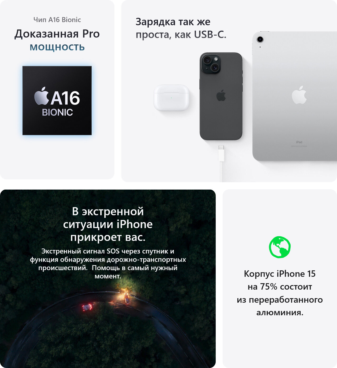 | Комплектация | смартфон Apple iPhone 15 Plus, кабель USB-C, документация |