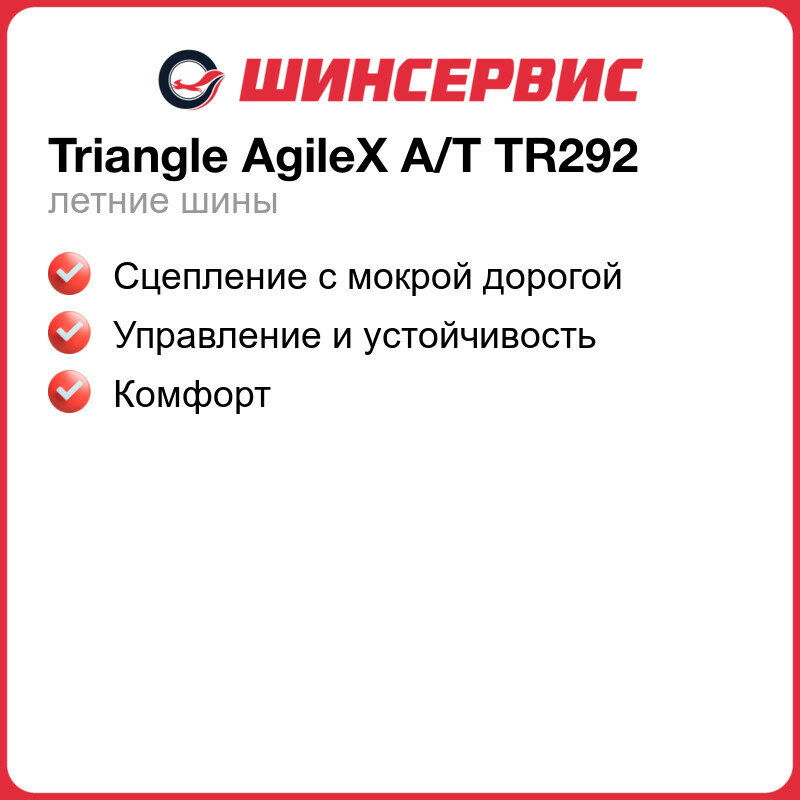 Автомобильная шина Triangle AgileX A/T TR292 265/50 R20 111T летняя для легкового автомобиля