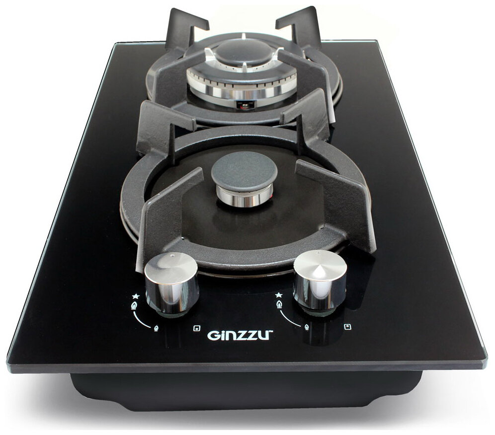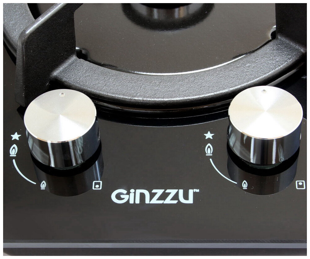 Варочная панель газовая Ginzzu HCG-242, стекло 2 конф, черная, эл.поджиг, газконтроль