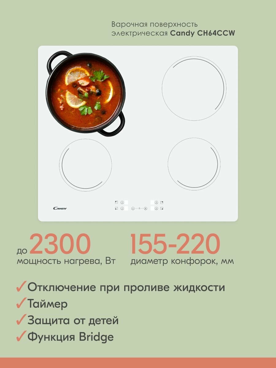 СохранитьЭлектрическая варочная панель Candy CH64CCW интересное: