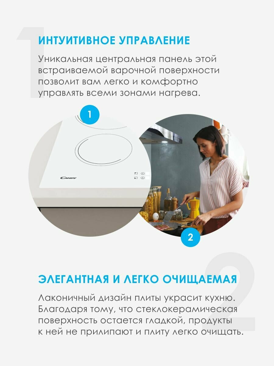 2. Есть защитная блокировка. 3. Понятное и простое сенсорное управление конфорками |