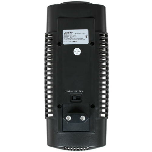 | Минусы: | Переключатель режимов на оборотной стороне, выключателя нет совсем, если не нужен, то надо вынимать из розетки. Нет режима УФ+вентилятор. Режим ионизатора не выключается, работает в любом положении переключателя. Плавкий предохранитель могли бы вынести на панель с лампой. |