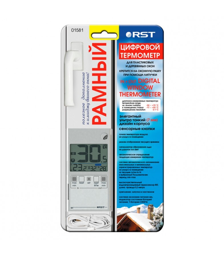 Термометр оконный RST в ультратонком (7 мм) корпусе дом/улица (RST01581)