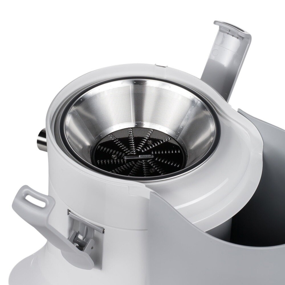Очень удобно, что горлышко для загрузки плодов широкое, благодаря этому даже крупные фрукты и овощи можно загружать целиком. Сок отжимается качественно, для твердых фруктов/овощей и сочных ягод предусмотрено 2 скорости отжима. Я довольна покупкой. |